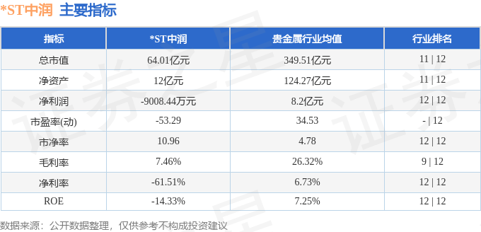 *ST中润主要指标及行业内排名如下: